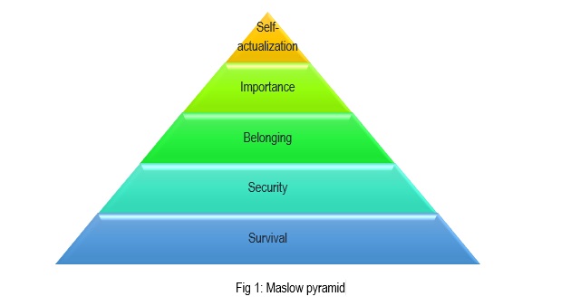 Maslow pyramid of needs covers different areas and levels of personal development. It looks like: